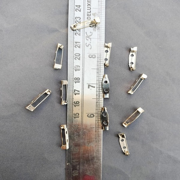 A set of flat metal brooch pin bases with smooth round plates, perfect for gluing or attaching decorative elements such as fabric, beads, or polymer clay creations.