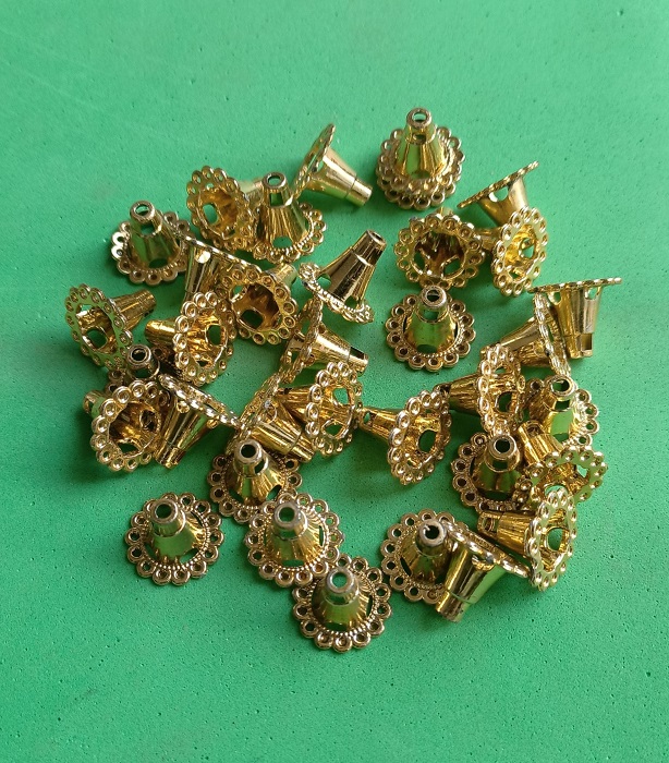 decorative accessory or craft item where an acrylic bead is encased in or adorned with a bead cap, which is then used to create hanging ornaments, jewelry pieces, or decorations.