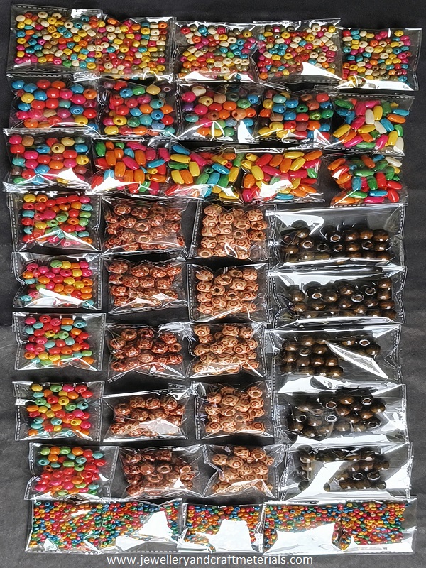 3 shapes Wooden beads 5 packet of 10 grams each