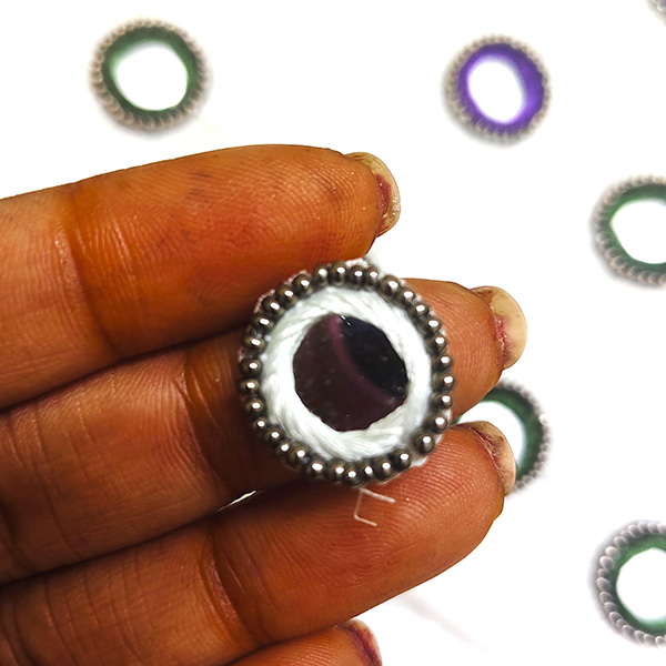 Add a touch of traditional elegance to your crafts with this multicolor circle mirror embroidered patch (0.6 inch). Designed with fine thread embroidery around a shining mirror centerpiece, these patches bring vibrance and charm to any creative project. Their compact size makes them perfect for intricate detailing while still adding a bold highlight.