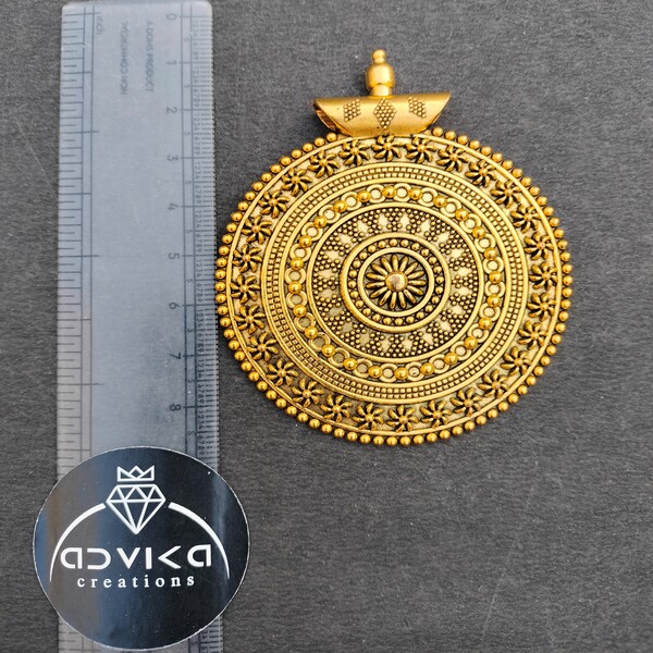 Add a touch of elegance and tradition to your look with this intricately designed oxidized pendant. Expertly crafted in both silver and golden tones, this pendant captures the timeless beauty of ethnic jewelry while offering a modern twist. Perfect for pairing with sarees, lehengas, or even western attire, its antique finish lends a vintage charm that enhances any outfit. Whether for festive occasions like Diwali, weddings, or everyday wear, this pendant will make you shine with its unique and versatile appeal. Make a statement with this stunning piece that’s sure to turn heads!