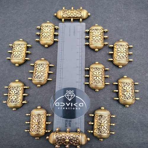 Tabij connectors, also known as "tabeez" or "taveez," are traditional Indian jewelry components often used in necklace, bracelet, and anklet designs.