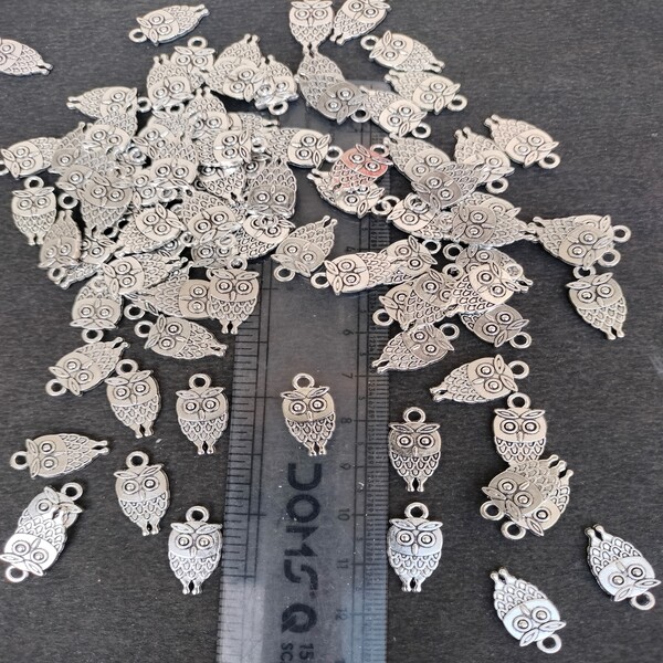 silver oxidised owl charm